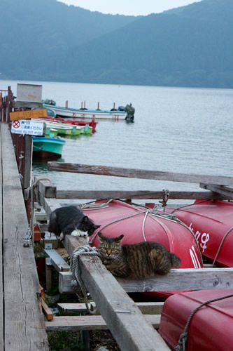 箱根湖尻温泉 半ノラちゃん(西村りえ撮影@ボート乗り場)